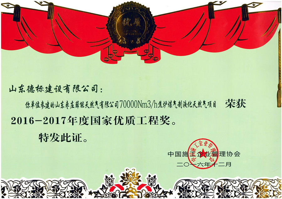 2016-2017年度國家優(yōu)質(zhì)工程獎(jiǎng)-焦?fàn)t煤氣制液化天然···