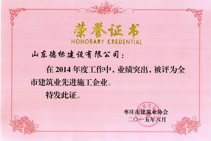 2016年度棗莊市建筑業(yè)先進(jìn)企業(yè)