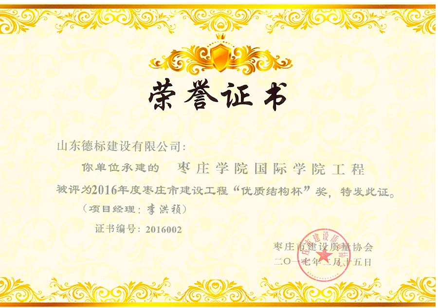 2016年市優(yōu)質(zhì)結(jié)構(gòu)-棗莊學(xué)院國際學(xué)院
